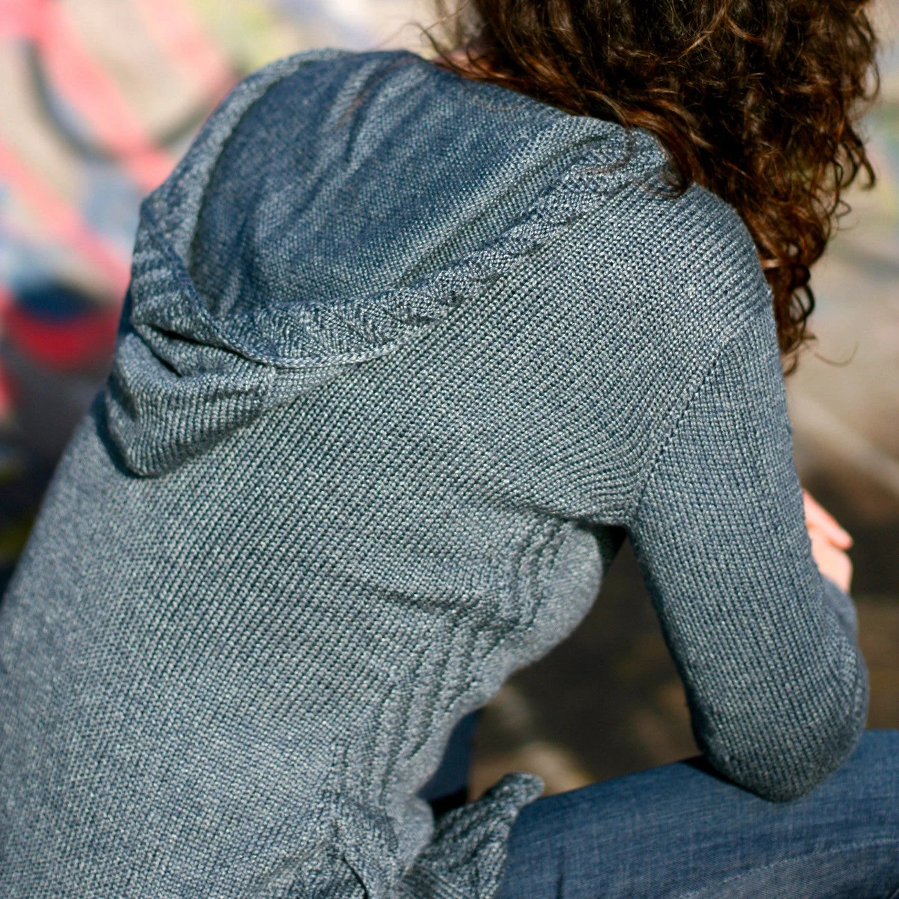 Worked from the top down the body is completed first and then stitches are picked up and set-in sleeves are worked from the top down.