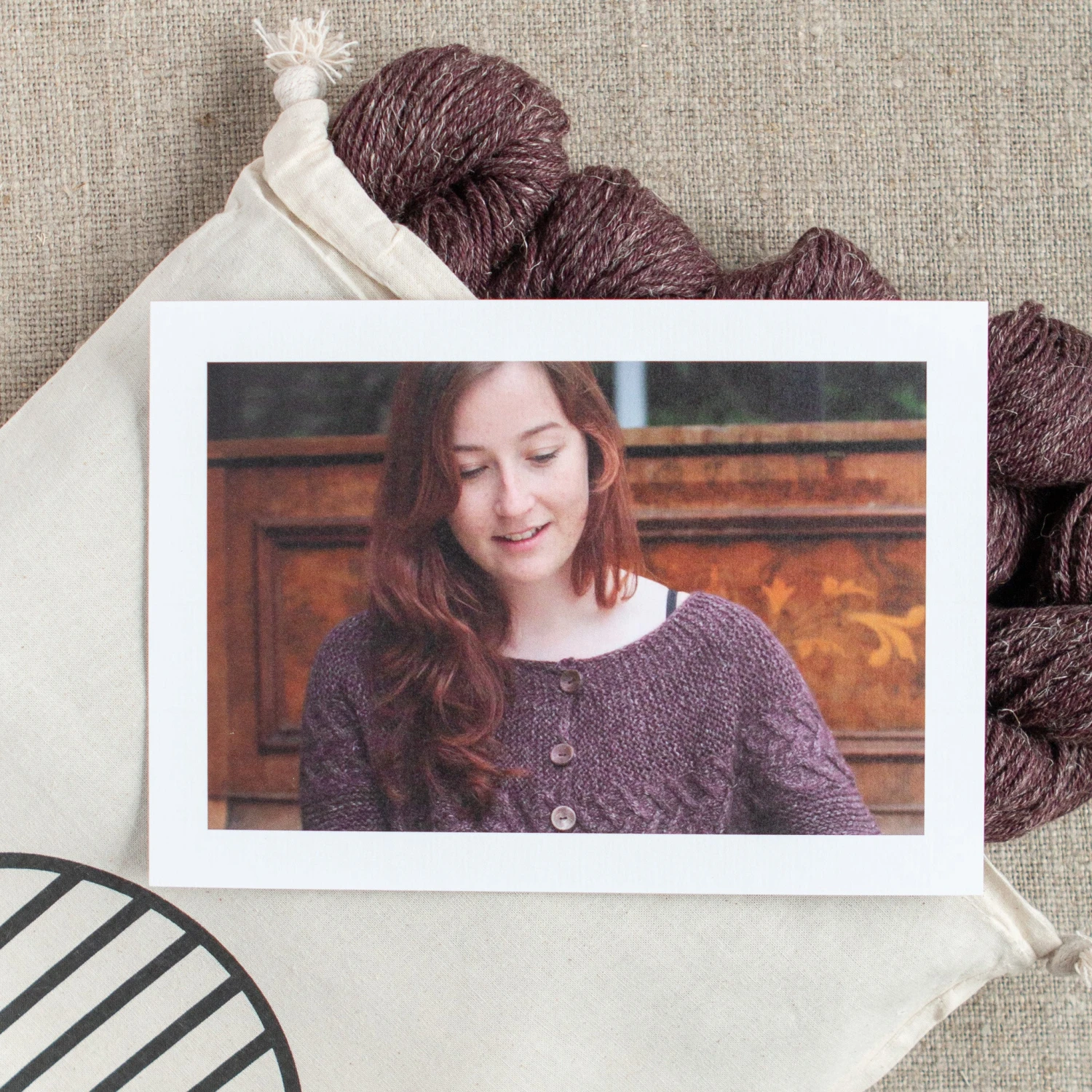 Knit contains enough Nua Worsted yarn for your choosen size and a cotton project bag.