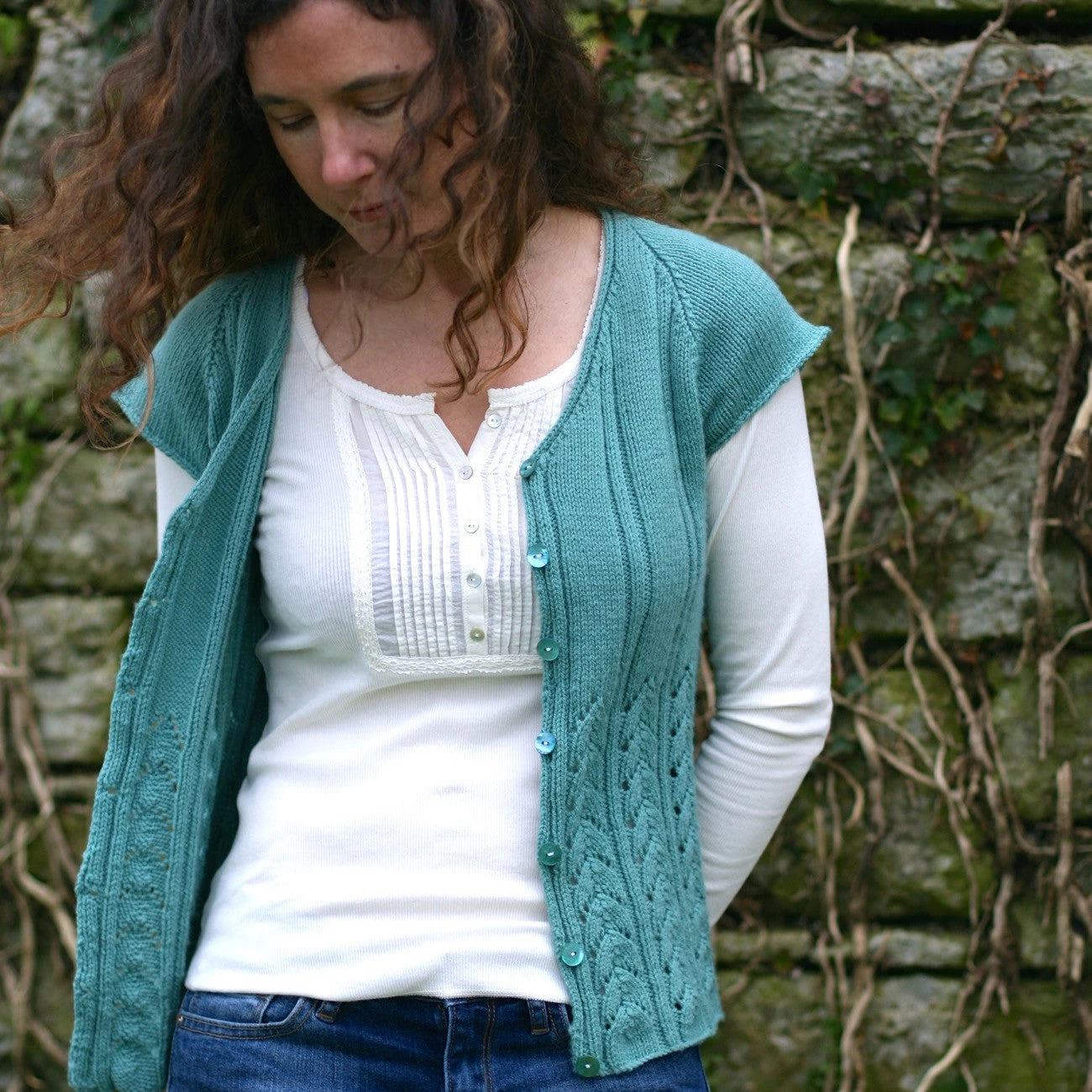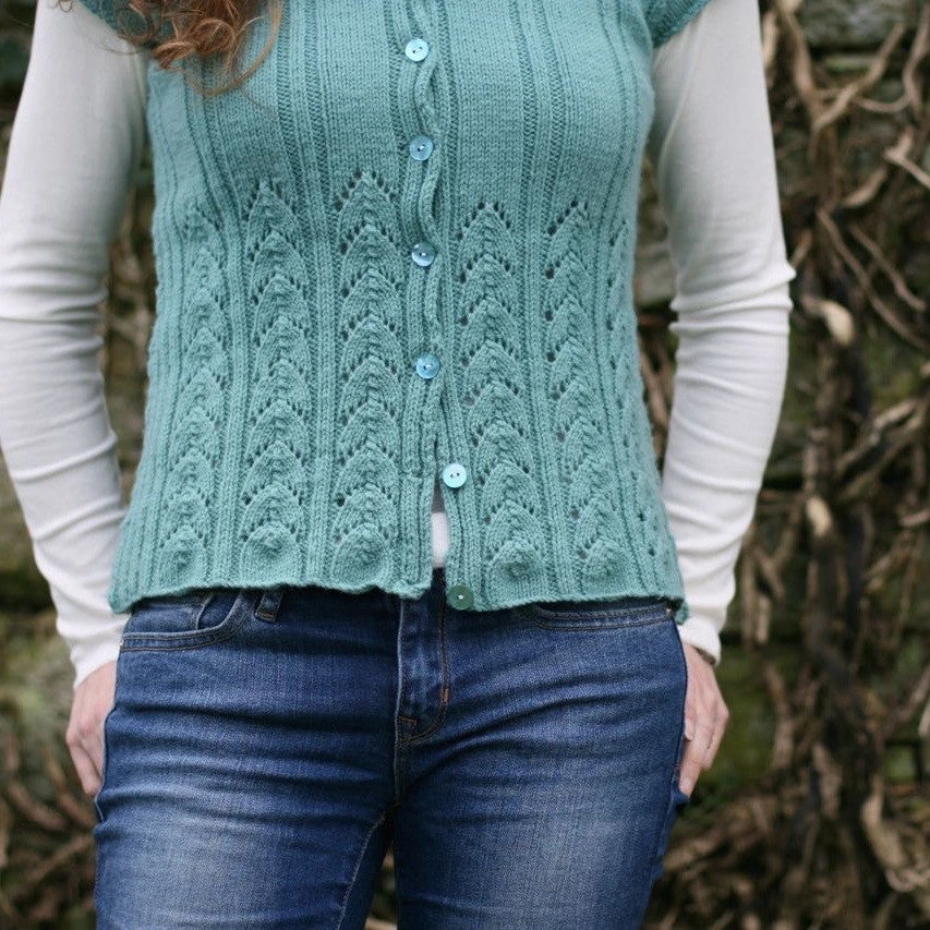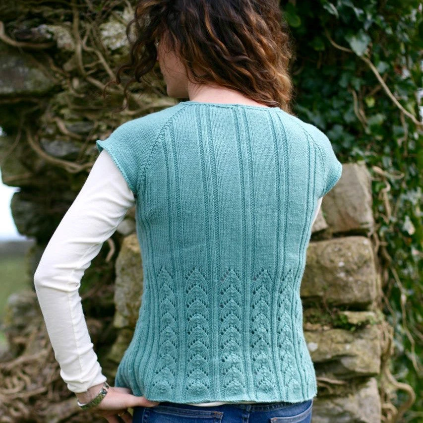 Knit in one piece from the bottom up, watch the lace flow smoothly into the ribbed bodice.