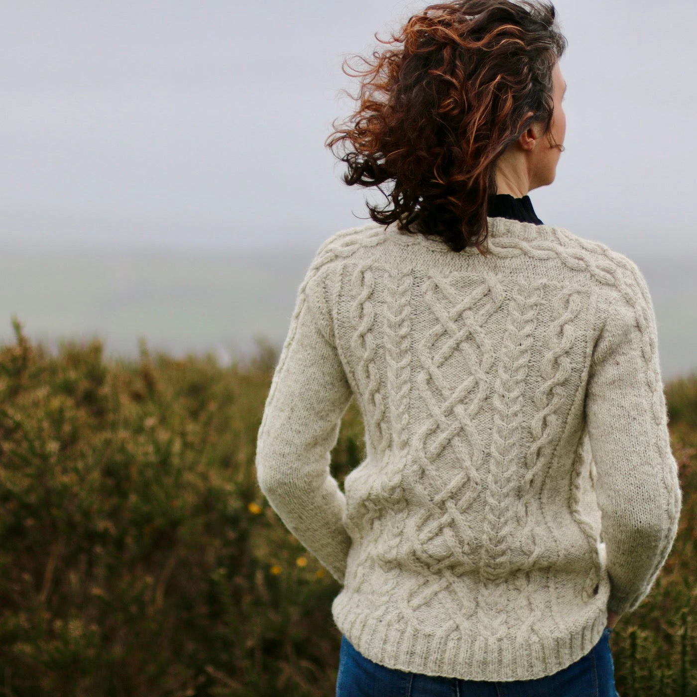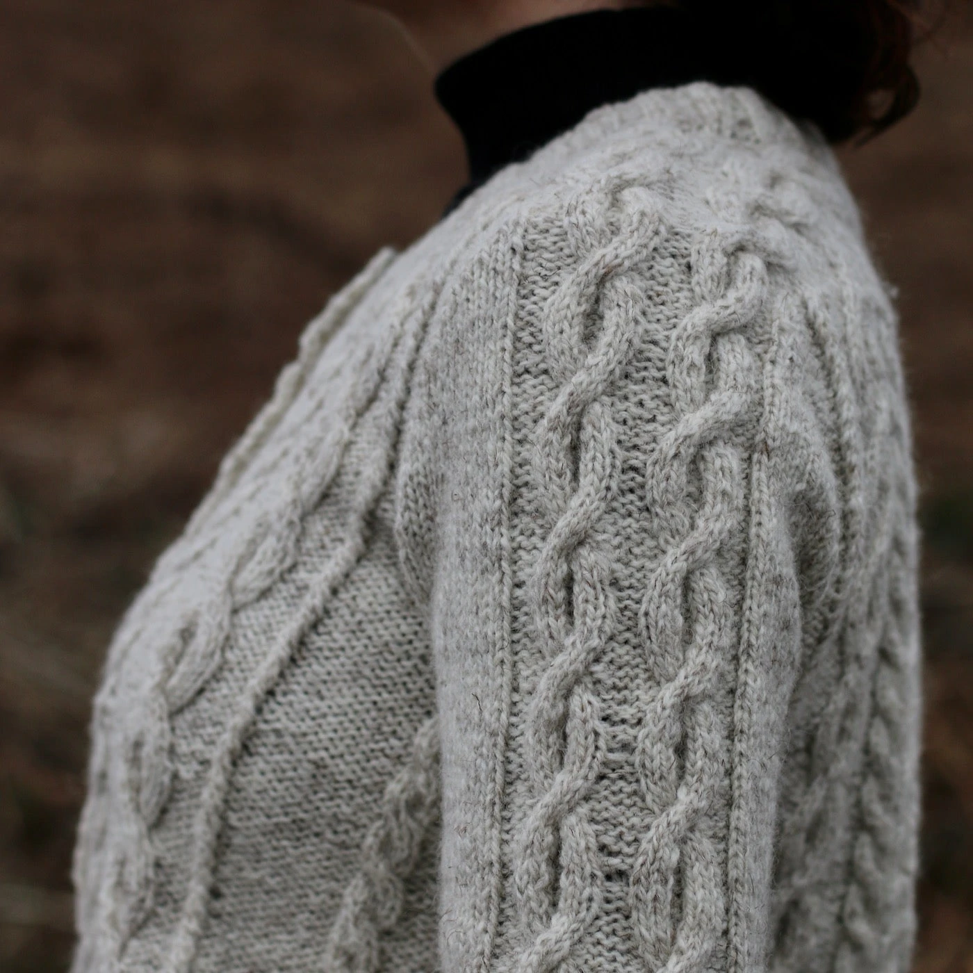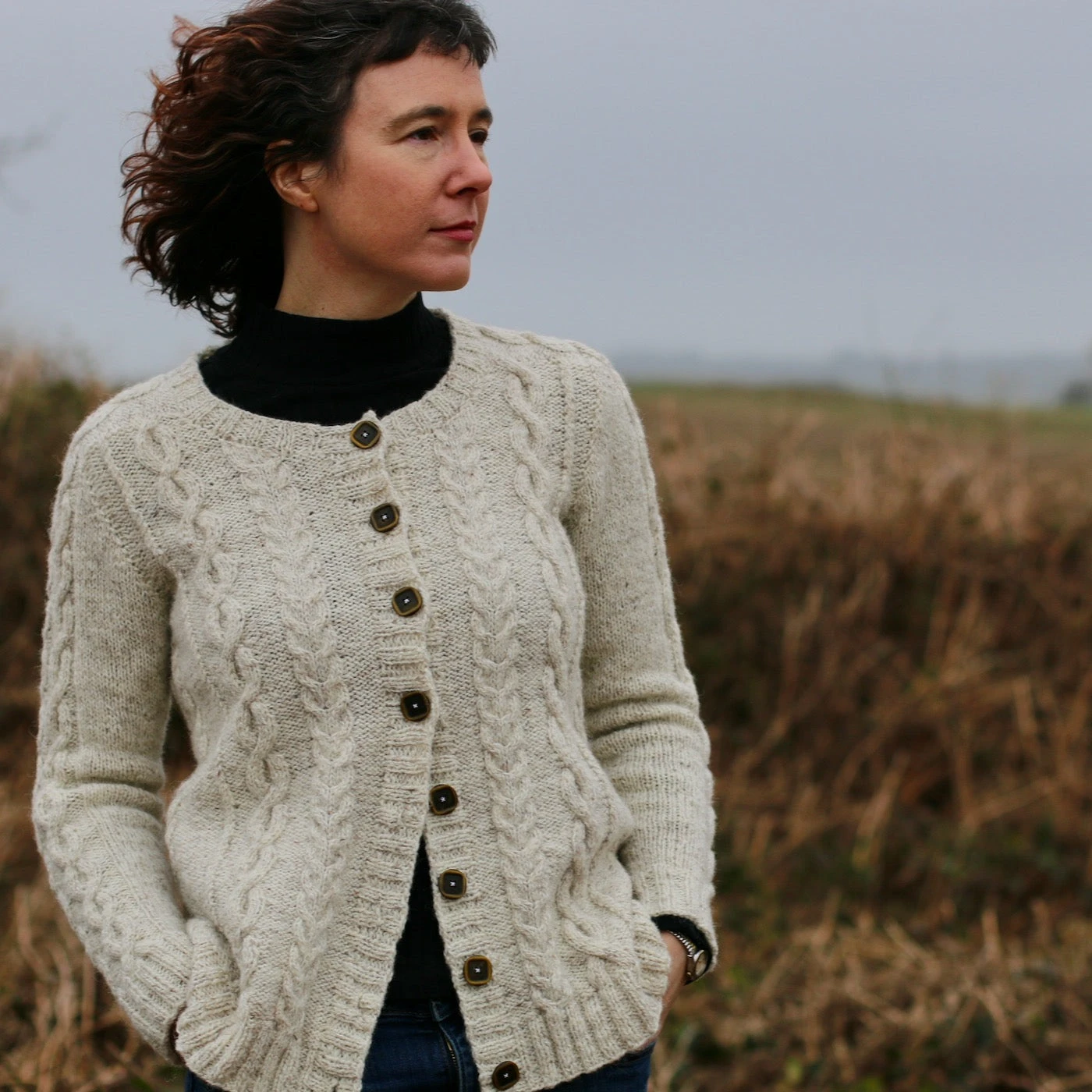 Comfortable and elegant and an instant wardrobe staple, this cardigan combines a beautiful Irish Yarn with fun cables for a timeless finished piece.