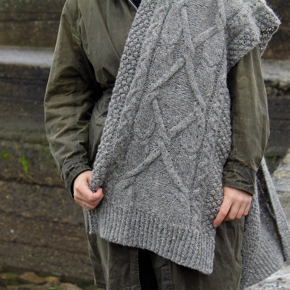 Find all the yarn you need for the Ferry Times cabled wrap, worked in Stolen Stitches ‘Deas’.