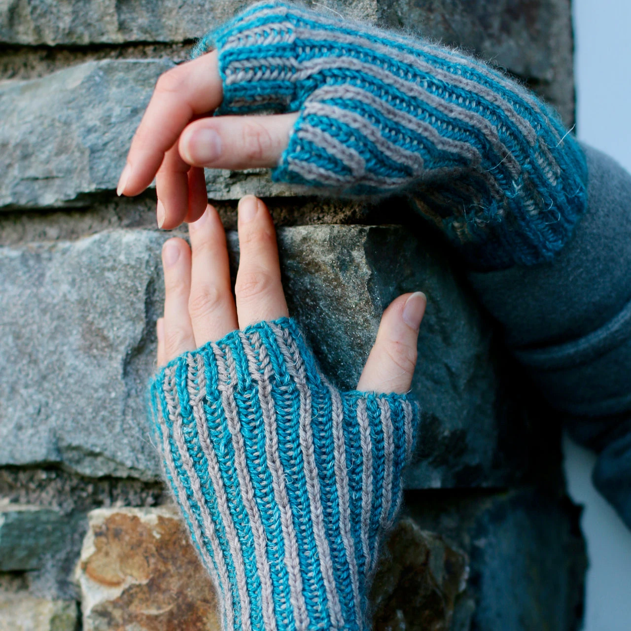 These mitts are a great way to increase your brioche skills, working from single colour brioche in the round into two-colour brioche. From there you try out syncopation and a decorative increase for the thumb.