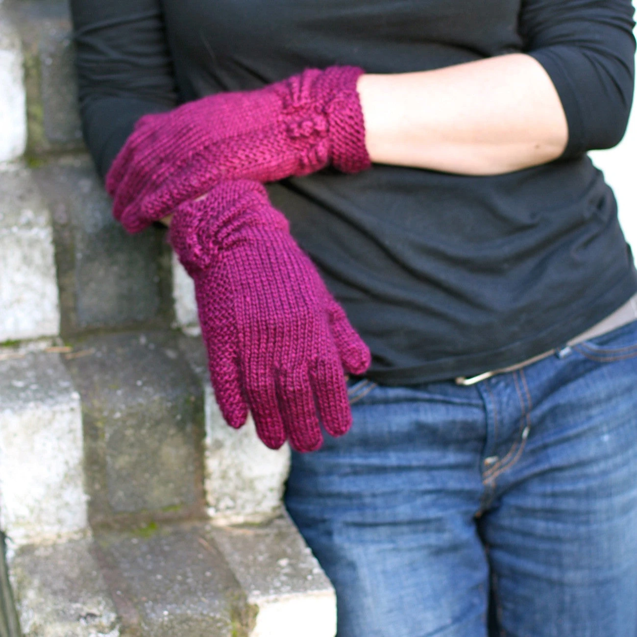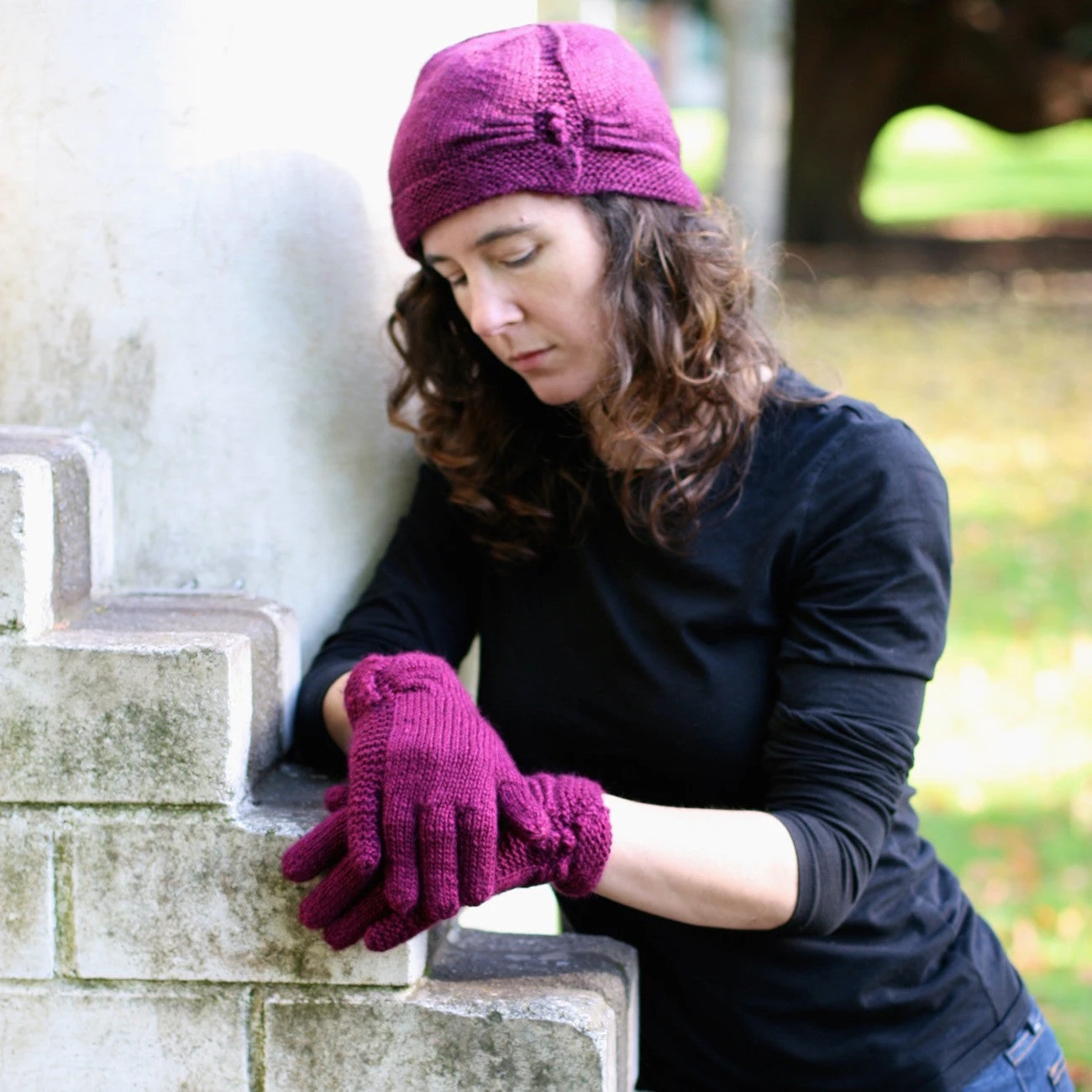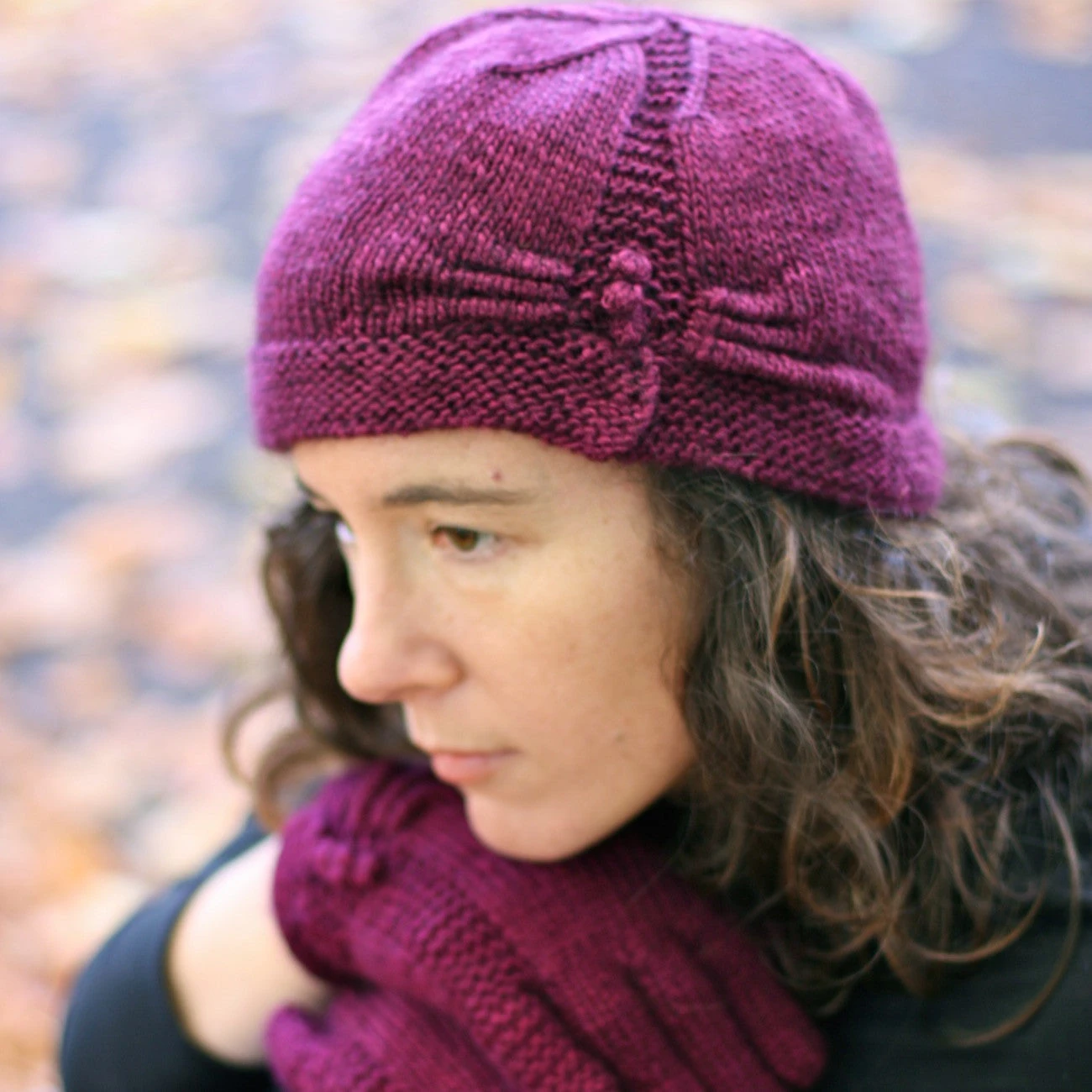Keep your hands and head warm this winter without losing out on style. The simple gloves have a little flair at the wrist with a decorative gather and faux bobble summarys. Wrist fastens using a snap to ensure a perfect fit. The hat has a gathered edge and garter stitch detail to create off centre interest. The head band is fastened using a snap for a perfect fit.
