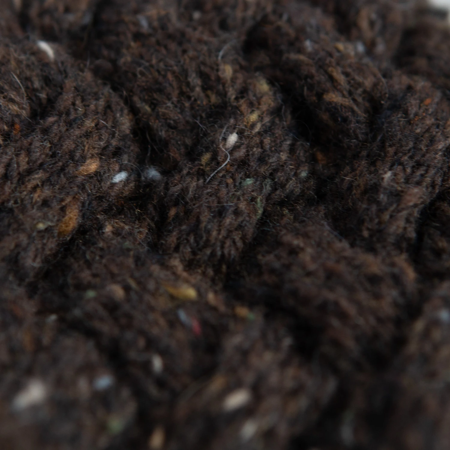Deas is an aran weight Irish yarn, 86% Merino Wool and 14% Mohair woollen spun yarn with a hint of a halo when blocked. The mohair content creates a warm fabric that is deceptively light to wear.