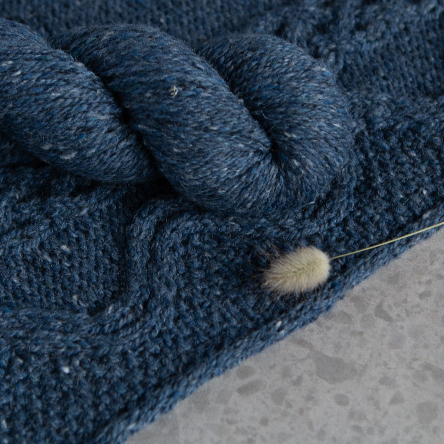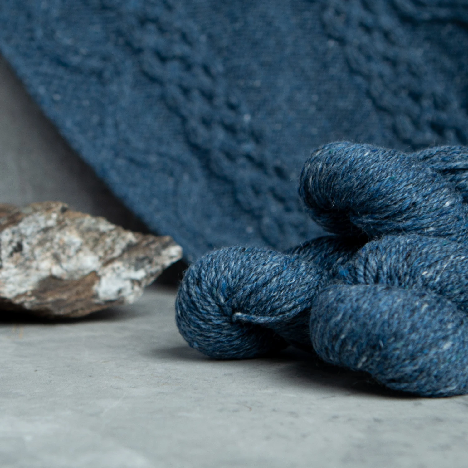 Deas is an earthy aran weight Irish yarn, 86% Merino Wool and 14% Mohair woollen spun yarn with a hint of a halo when blocked. The mohair content creates a warm fabric that is deceptively light to wear.