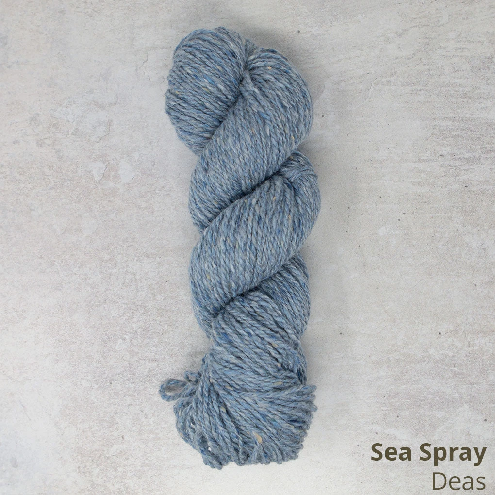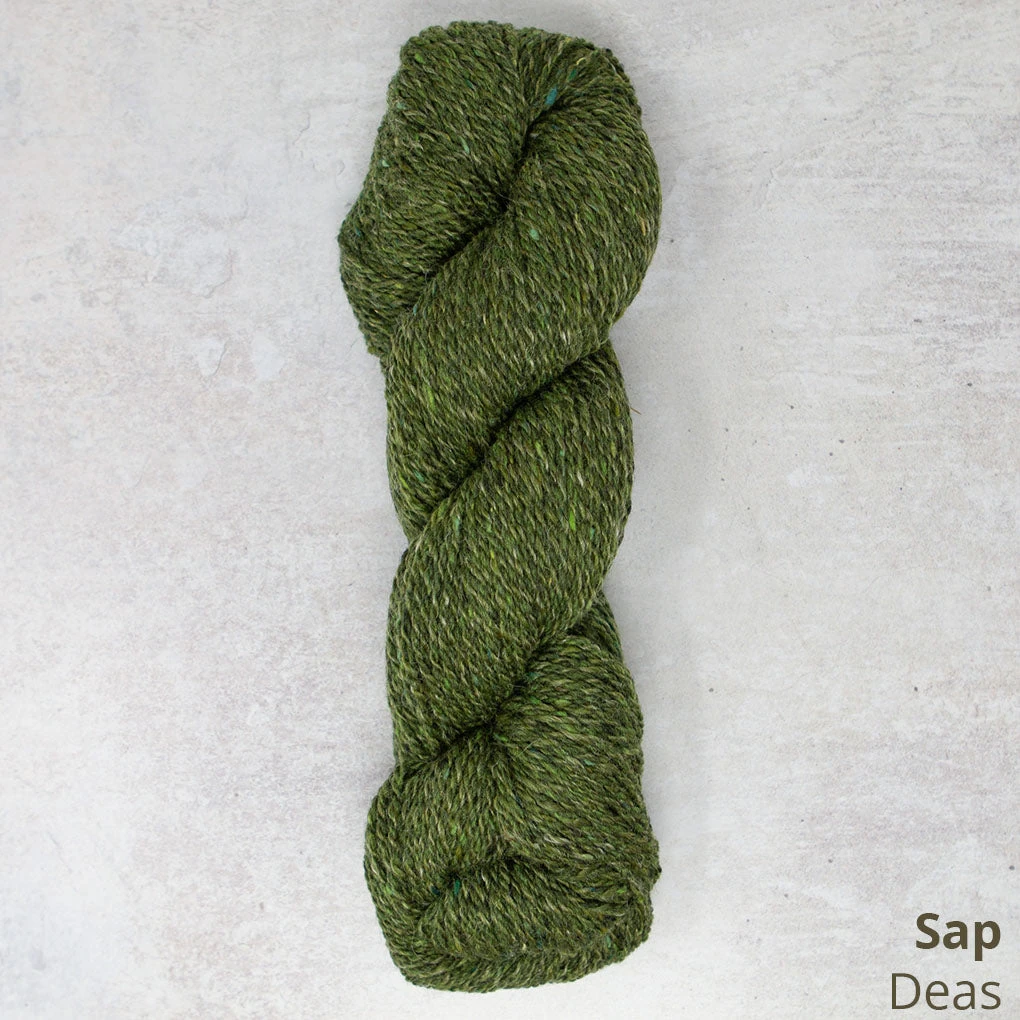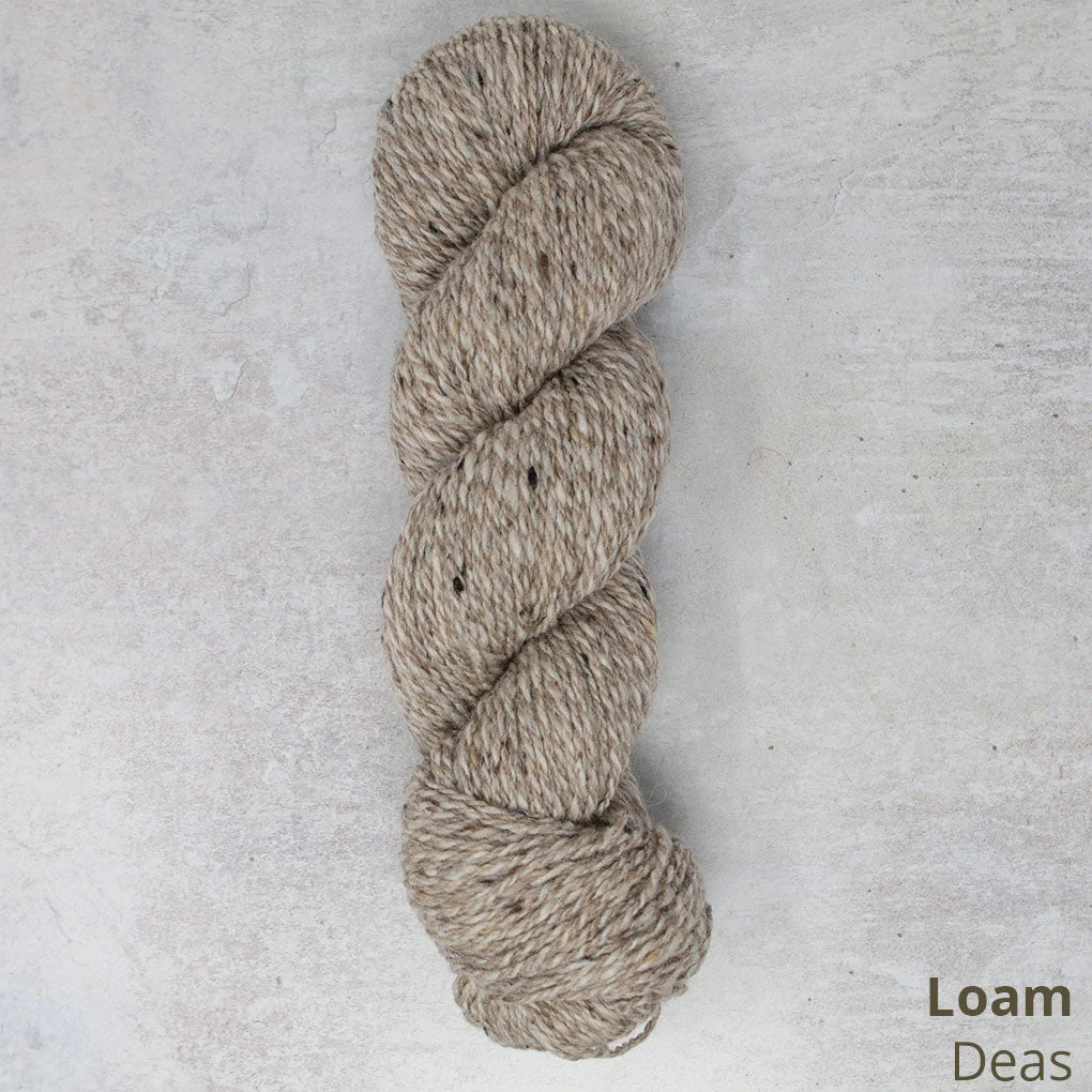 Choose between wonderful Deas or dreamy Soft Donegal to make Carol’s classic Portulaca Cardigan.