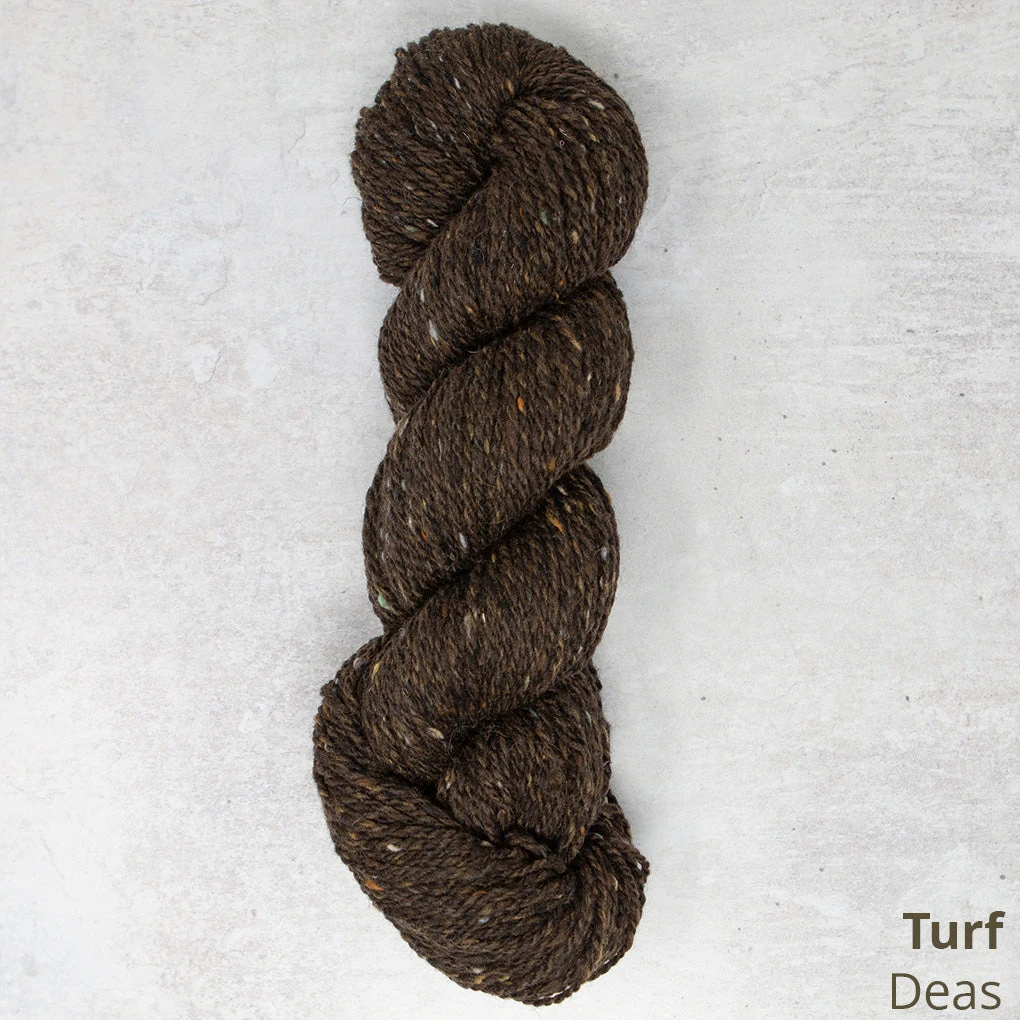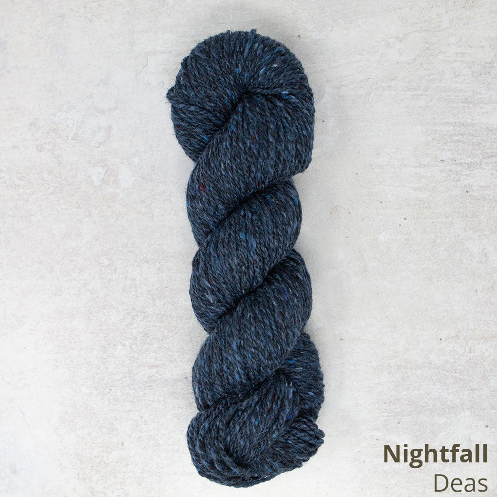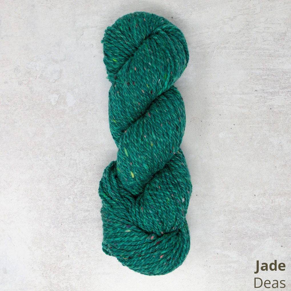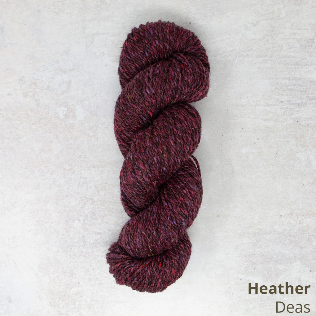 Choose between wonderful Deas or dreamy Soft Donegal to make Carol’s classic Portulaca Cardigan.