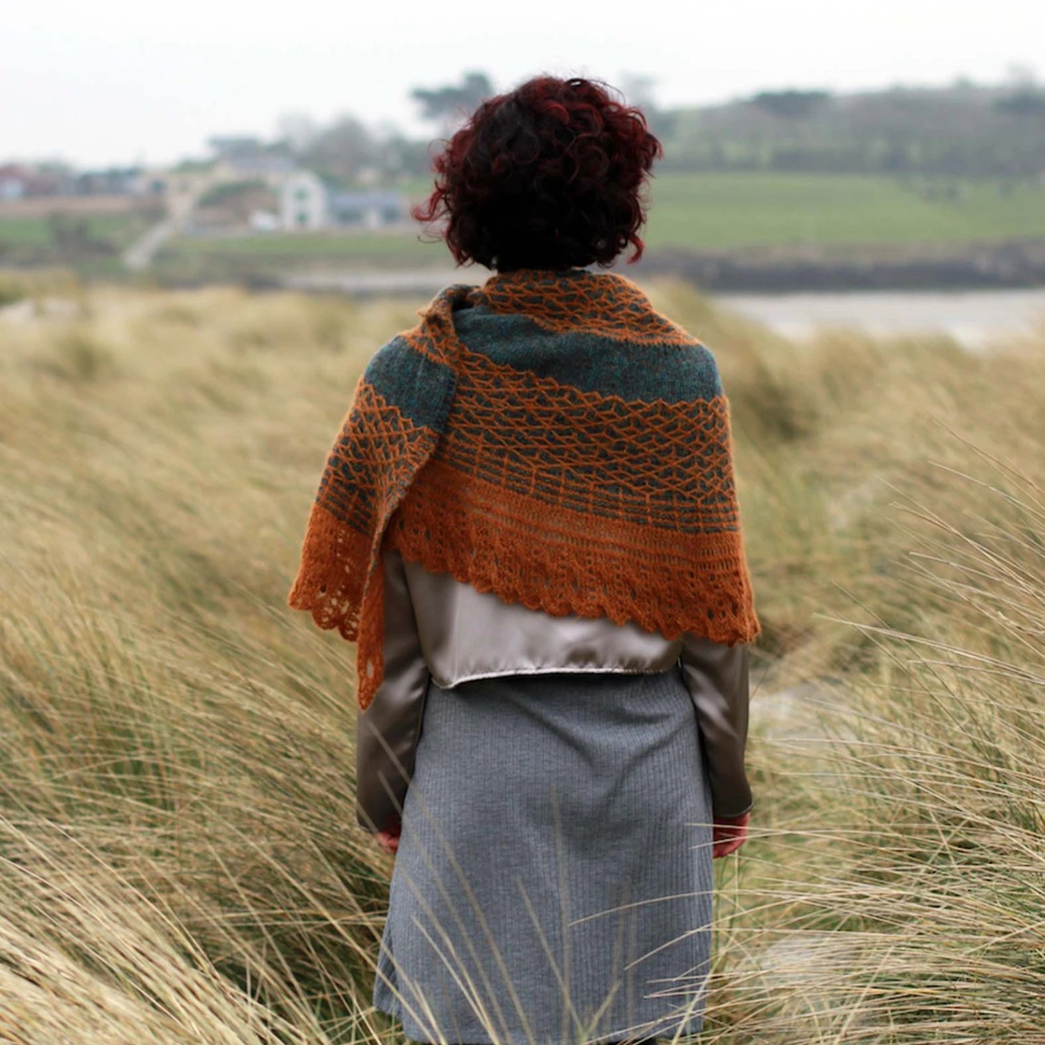 This shawl is so light it almost floats on your shoulders. A delicate, semi-circular shawl that’s knit from the top down. It really allows your beautiful yarns to shine.