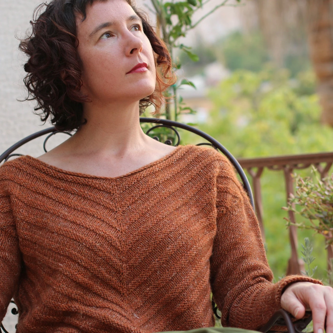 Let the knitting do all the work to create visual interest in this sweater. Knit from the top down on the bias, the simple stitch pattern looks totally different by adding increases and decreases! The sweater is designed to be worked with a good amount of positive ease but worn a little shorter, hitting just below the navel.