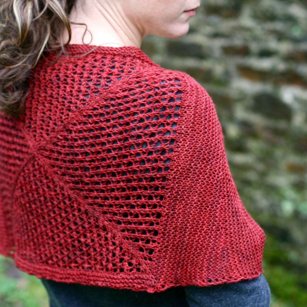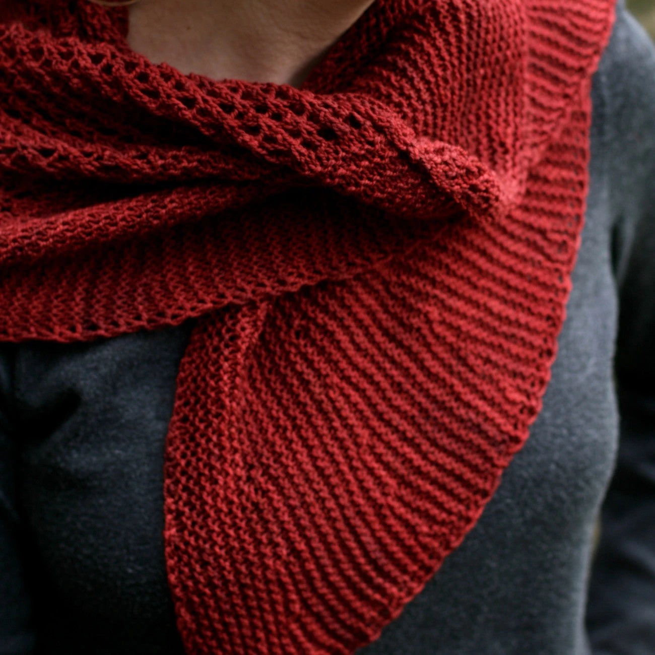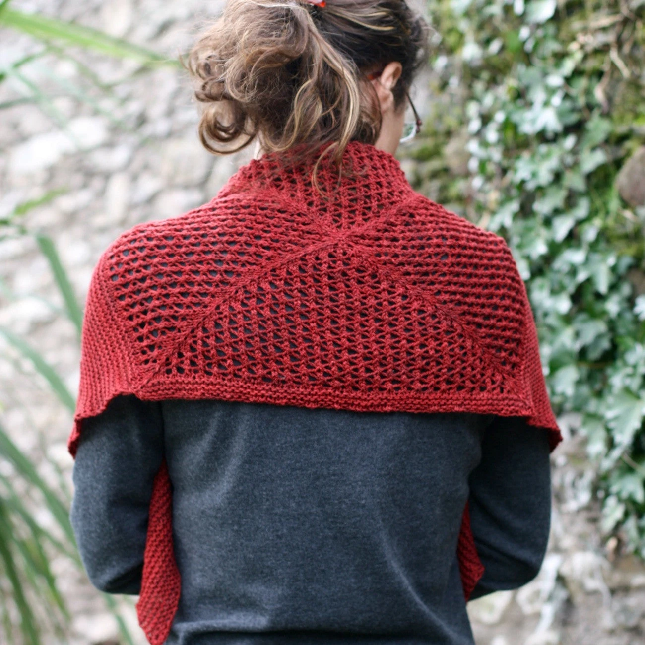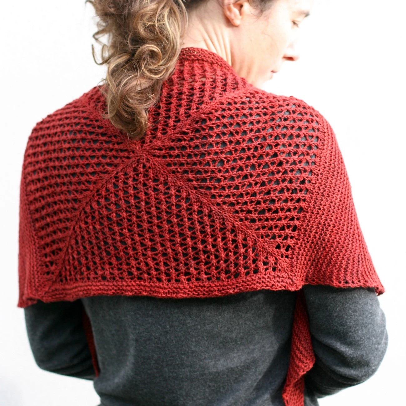 Knit the perfect sized shawlette making full use of your beautiful yarn. Worked from the center with a lace center and short row garter stitch wings.