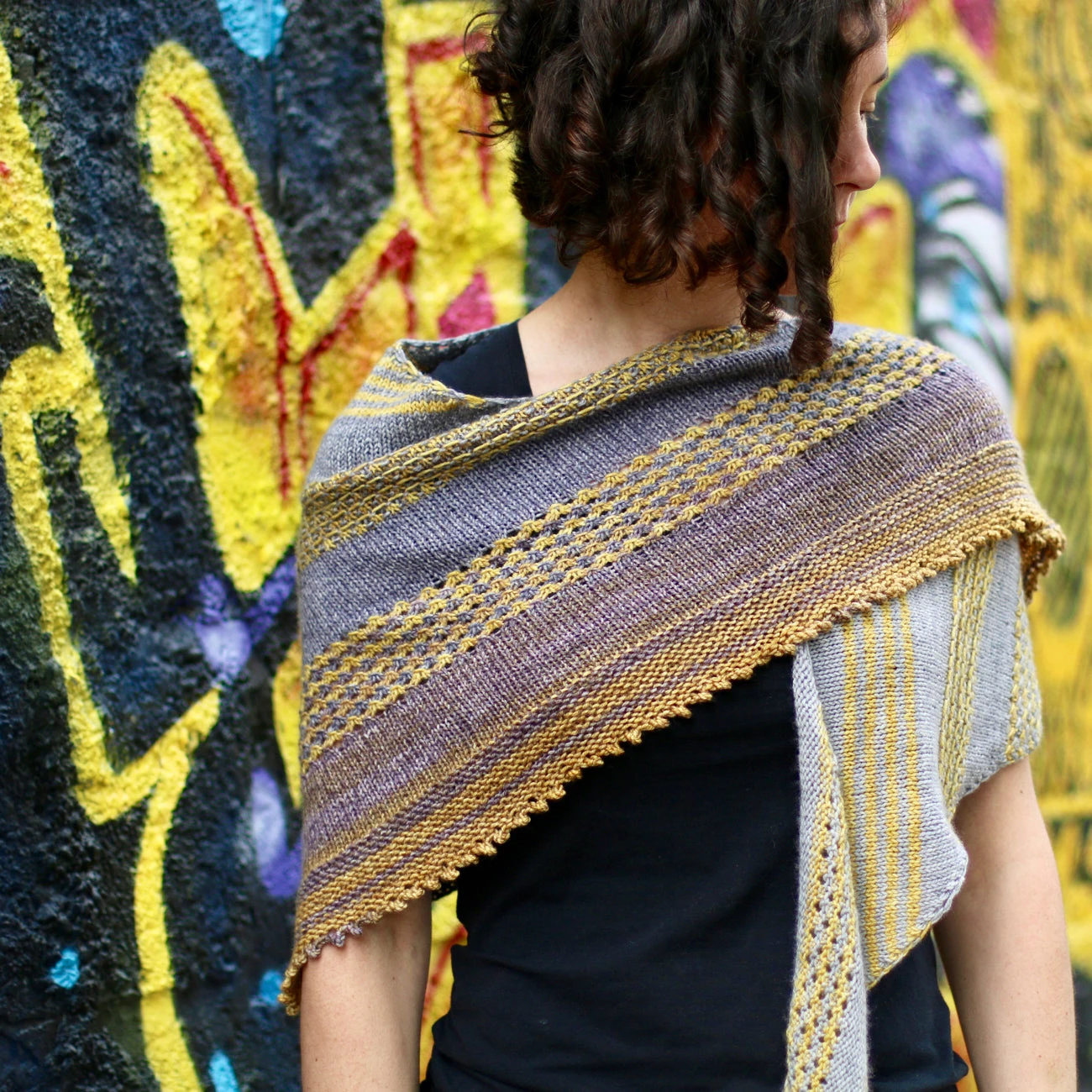 This shawl is part of the Knitting with Rainbows book, found in digital and print with digital format.