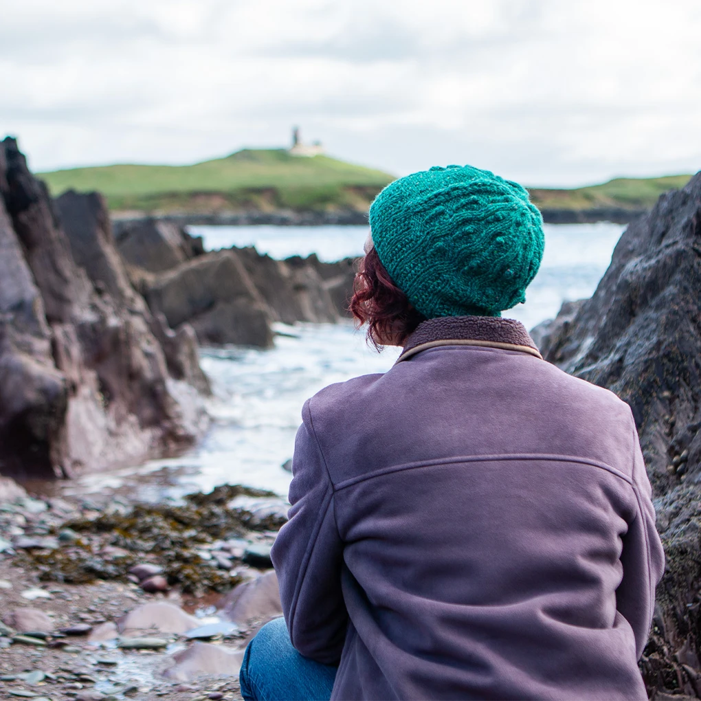 Find all the yarn you need for the both the Sherkin Hat and Sherkin Mitts in Stolen Stitches ‘Deas’.