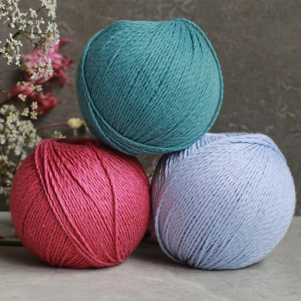 A gorgeous blend of Mongolian cashmere and Peruvian Pima cotton. A sport weight yarn that is perfect for your lighter knits.