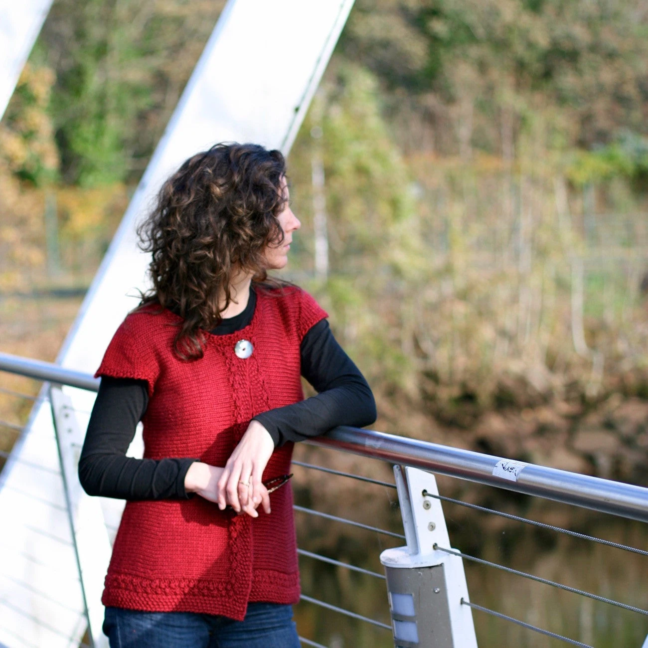 The unusual construction of this cardigan makes this a very fun knit. Worked from side to side starting at the center of the back, curvy short row hip shaping, clever side joining and short row sleeve caps can introduce you to several new techniques.